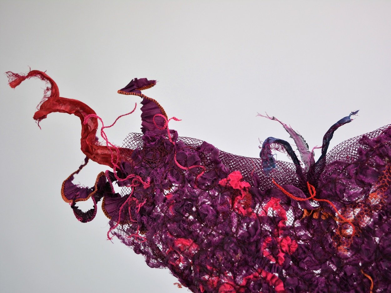 My fabrics are moving into new forms, I am assembling, embroiding, sewing small parts of pleats and tulle creating sculptures.